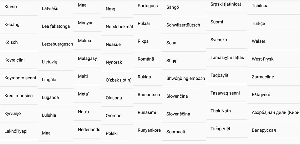 | Language | Indonesian, Malay, Catalan, Czech, Danish, German, Estonian, English, Spanish, Filipino, French, Croatian, Italian, Latvian, Lithuanian, Hungarian, Dutch, Norwegian, Polish, Portuguese, Romanian, Slovak, Finnish, Swedish, Vietnamese, Greek, Turkish, Bulgarian, Russian, Serb, Ukrainian, Armenian, Hebrew, Urdu, Arabic, Persian, Hindi, Bengali, Thai, Korean, Burmese, Japanese, Simplified Chinese, Traditional Chinese | |