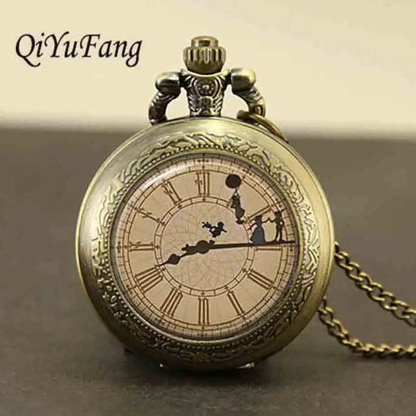 Excellent New QiYuFang Inspired US Movie Peter pan time watches Necklace brass silver Pocket watch steampunk Jewelry Gift women chain toy mens comparison sale Rating: 3.5 out of 5