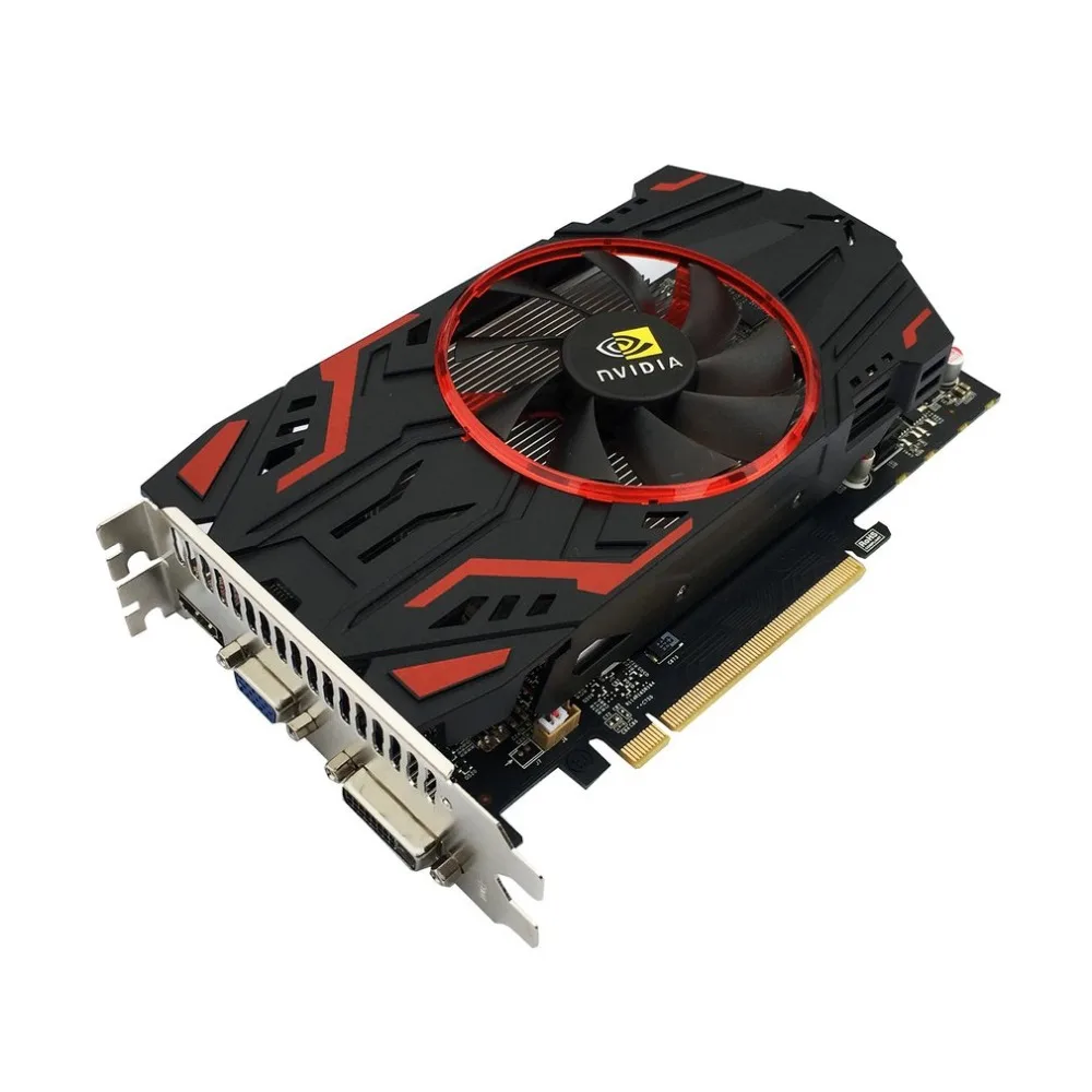 ...Features:Super low consumption and calorific value. It has HDMI, VGA, DVI interfaces, support high definition video. With cooler fan for good heat dissipation.Multi-phase power supply. Compact size, easy to install. Descriptions:Model: GTX1050Interface: PCI-E Cpu: GP107Shaders: 768 Unified Core Speed: 928MHz Memory: 1350MHz Memory Size: 2048MB Memory Width: 128BIT Memory Type: GDDR5 Interface: Mini HDMI + VGA + DVI Power Interface: NO Cooler Fan: Yes PCI Express: PCI-E 3.0 16X Specifications:Material: plastic and Electronic Components Size: 220*110mmColor: black & red Package included:1 x GTX1050 Graphics Card