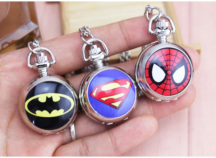 On-time Delivery: If you do not receive your purchase within 60 days, you can ask for a full refund before order completion (when you click "Confirm Order Received" or exceed confirmation timeframe).2018 Clearance Silver Superman Batman spiderman Pocket Watch with Necklace Chain Fashion Steampunk Quartz Watch Mens Pocket Gifts 10pcs/lot
