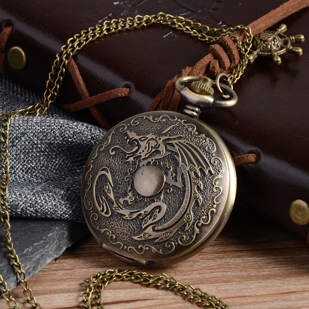 Cool New Cindiry vintage Bronze Mechanical Dragon fullmetal alchemist Pocket Watch Chain vintage Steampunk Quartz pocket watches Men comparison sale Rating: 4.8 out of 5