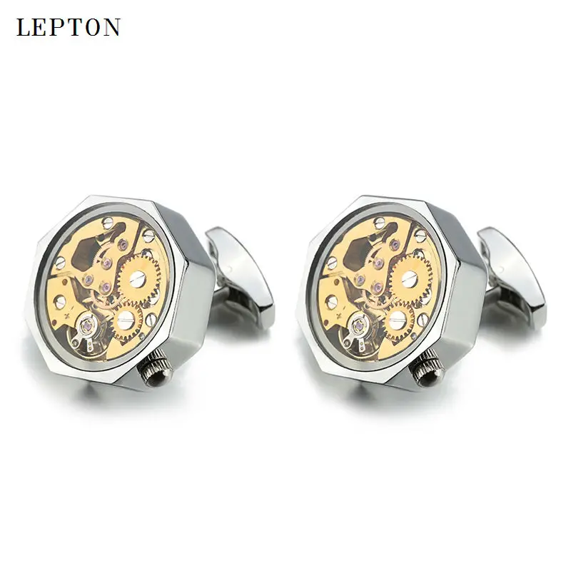 On-time Delivery: If you do not receive your purchase within 60 days, you can ask for a full refund before order completion (when you click "Confirm Order Received" or exceed confirmation timeframe).Hot Discount Hot Sale Gold Watch Movement Cufflinks With Glass Stainless Steel Steampunk Gear Watch Mechanism Cuff links for Mens gemelos