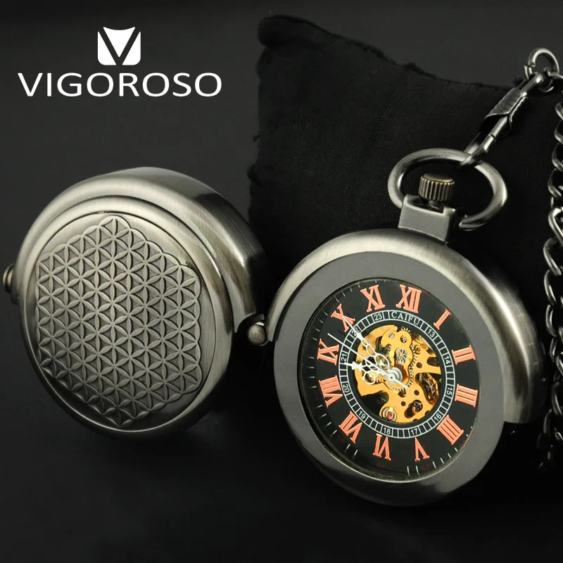 On-time Delivery: If you do not receive your purchase within 60 days, you can ask for a full refund before order completion (when you click "Confirm Order Received" or exceed confirmation timeframe).Wonderful New VIGOROSO Grey Steel Special Designer Steel Hide Carved Mechanical Pocket Watch Steampunk Hand-winding Vintage FOB&Pocket Watches