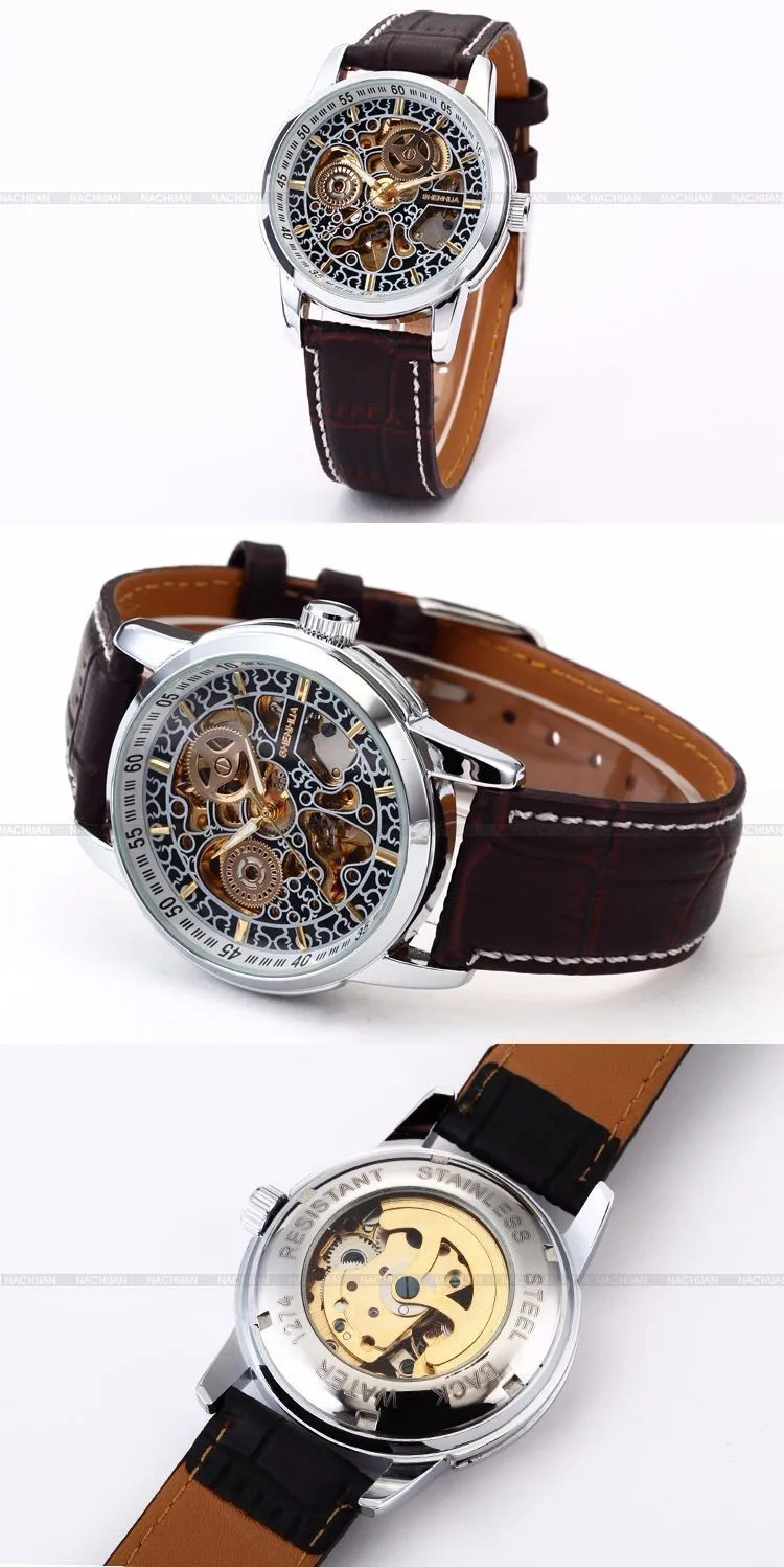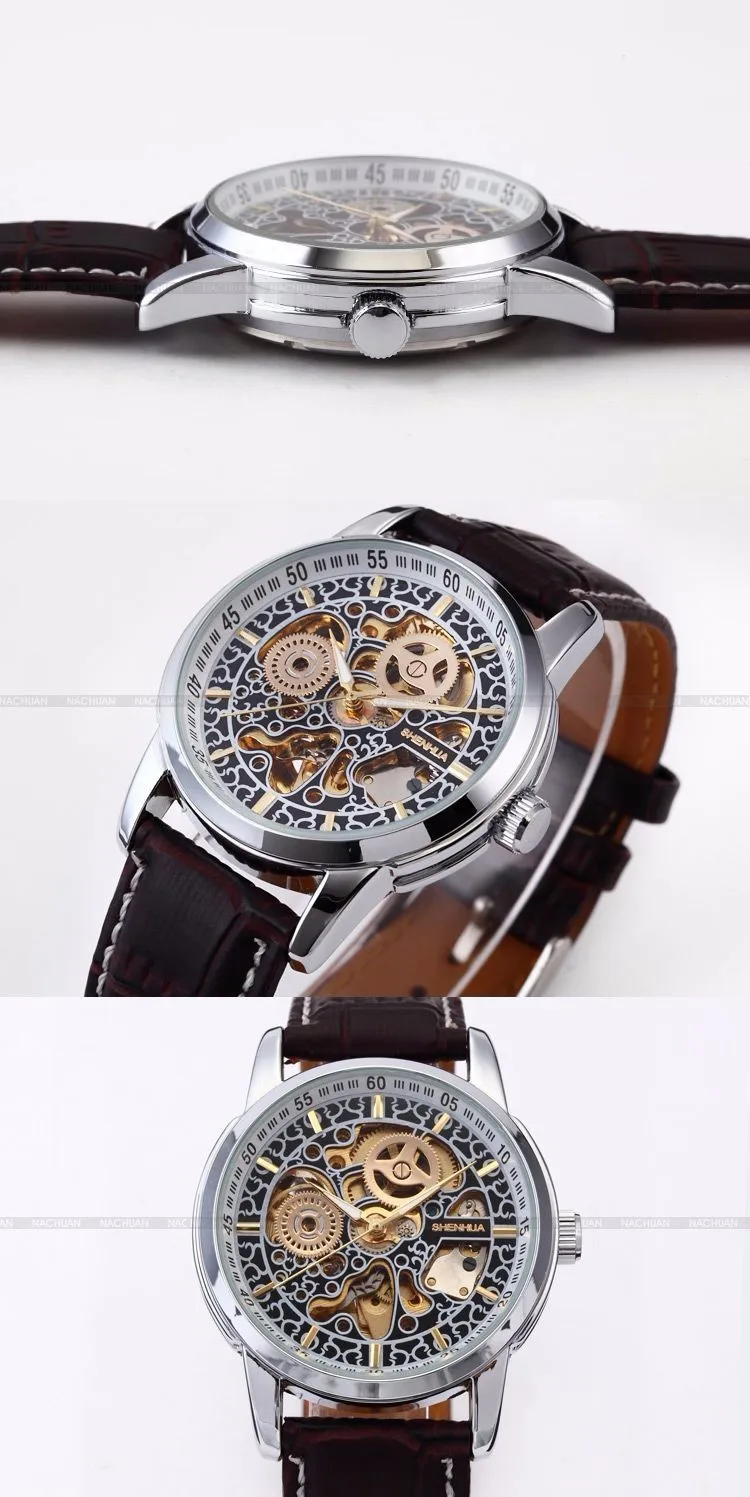 Big Special SHENHUA Men Skeleton Automatic Wristwatch Clock male Leather Strap Antique Steampunk Casual Skeleton Mechanical Watch New Unique comparison sale Rating: 4.7 out of 5