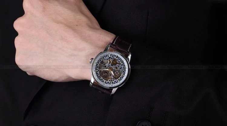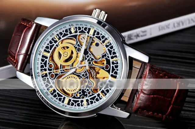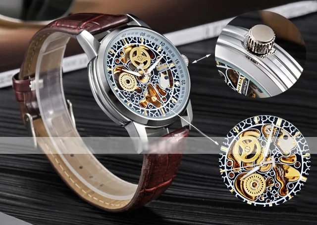I'm buying rare item and finally found in this market. I quickly bought some products that I wished at the same time. Seller is faster in answering. Package shipped quick less than 24 hours by shop admin. Quicker parcels delivered than basic estimates. I love to buy from this site more.Men Skeleton Automatic Wristwatch Clock male Leather Strap Antique Steampunk Casual Skeleton Mechanical Watch Relogio Masculino
