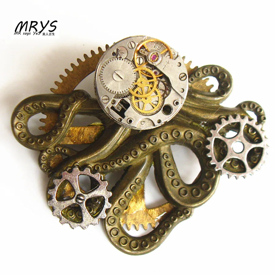Big Stock Promo steampunk gothic rock octopus watch parts gears pendant brooch pins badge men women girls vintage jewelry christmas gift party comparison sale Rating: 5 out of 5