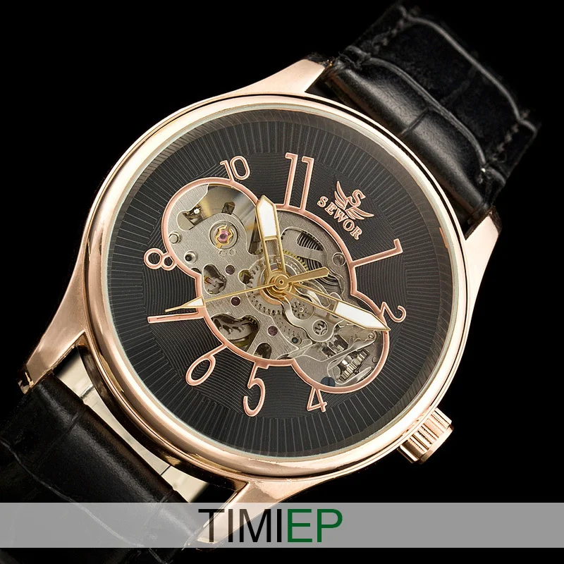 On-time Delivery: If you do not receive your purchase within 60 days, you can ask for a full refund before order completion (when you click "Confirm Order Received" or exceed confirmation timeframe).Cool Gift SEWOR Rose Gold Stainless Steel Steampunk wristwatch White Skeleton Mens Mechanical Watch