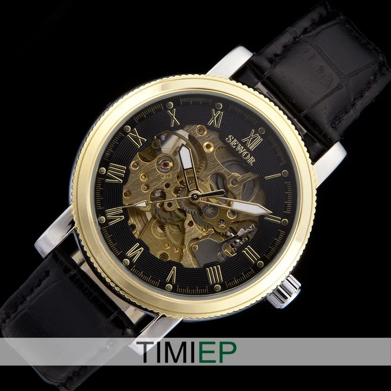 On-time Delivery: If you do not receive your purchase within 60 days, you can ask for a full refund before order completion (when you click "Confirm Order Received" or exceed confirmation timeframe).Hot Discount SEWOR Black Steampunk Trasparent Skeleton Analog Leather Hand-winding Mechanical Mens Watch