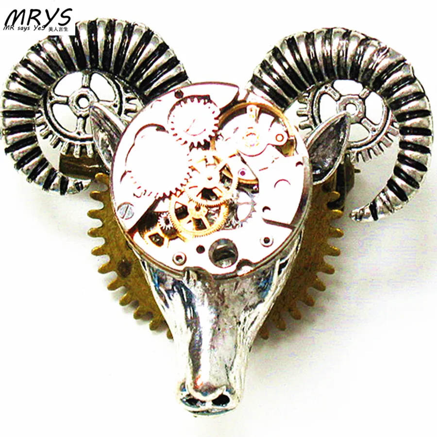 Hot Limited steampunk gothic punk rock Aries sheep goat watch parts collar brooch pins badge women men boy vintage handmade diy jewelry gift comparison sale Rating: 4.3 out of 5