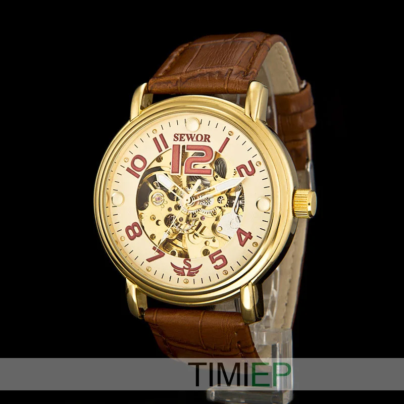Terrific Limited SEWOR Mens Mechanical Steampunk Skeleton Hand Wind Watch Mens Dress Watches Gold Tone comparison sale Rating: 5 out of 5