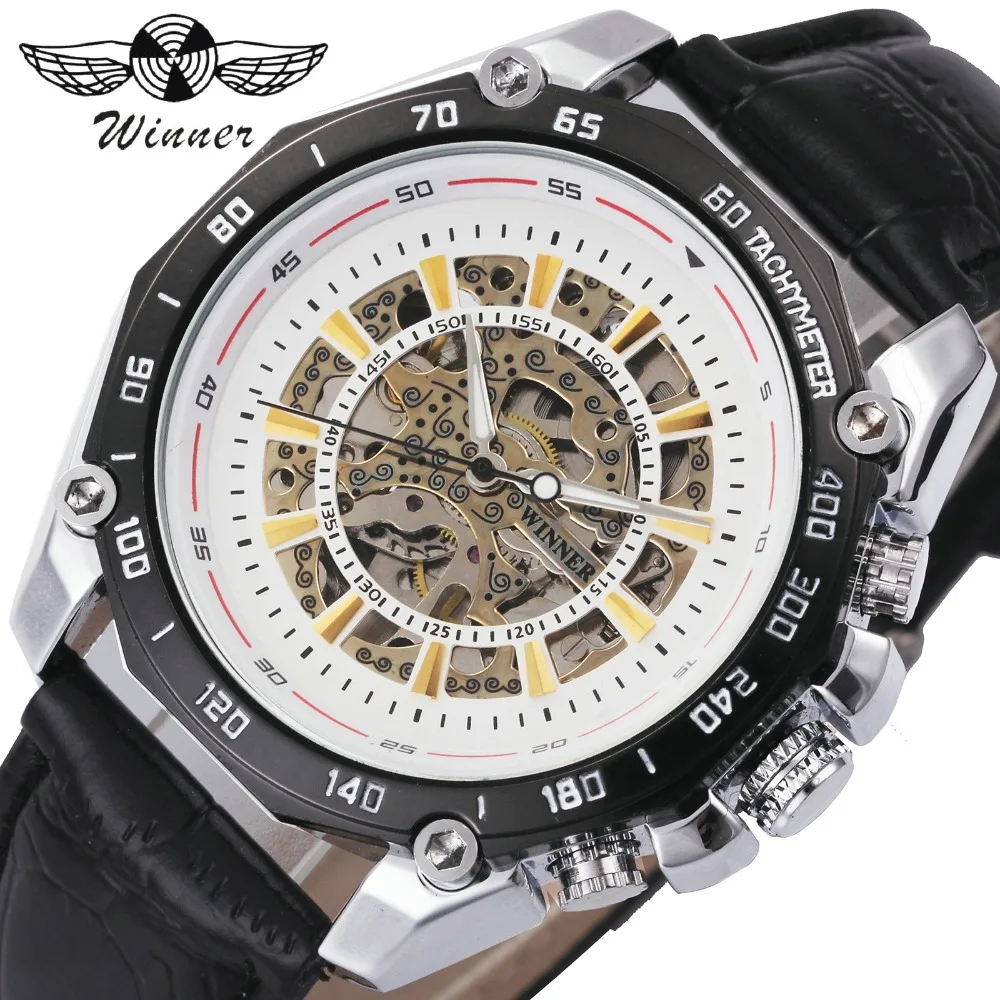 Terrific Offers WINNER Men Watches Top Brand Luxury Auto Mechanical Watch Skeleton Dial Leather Strap Military Steampunk relogio masculino comparison sale Rating: 3.8 out of 5