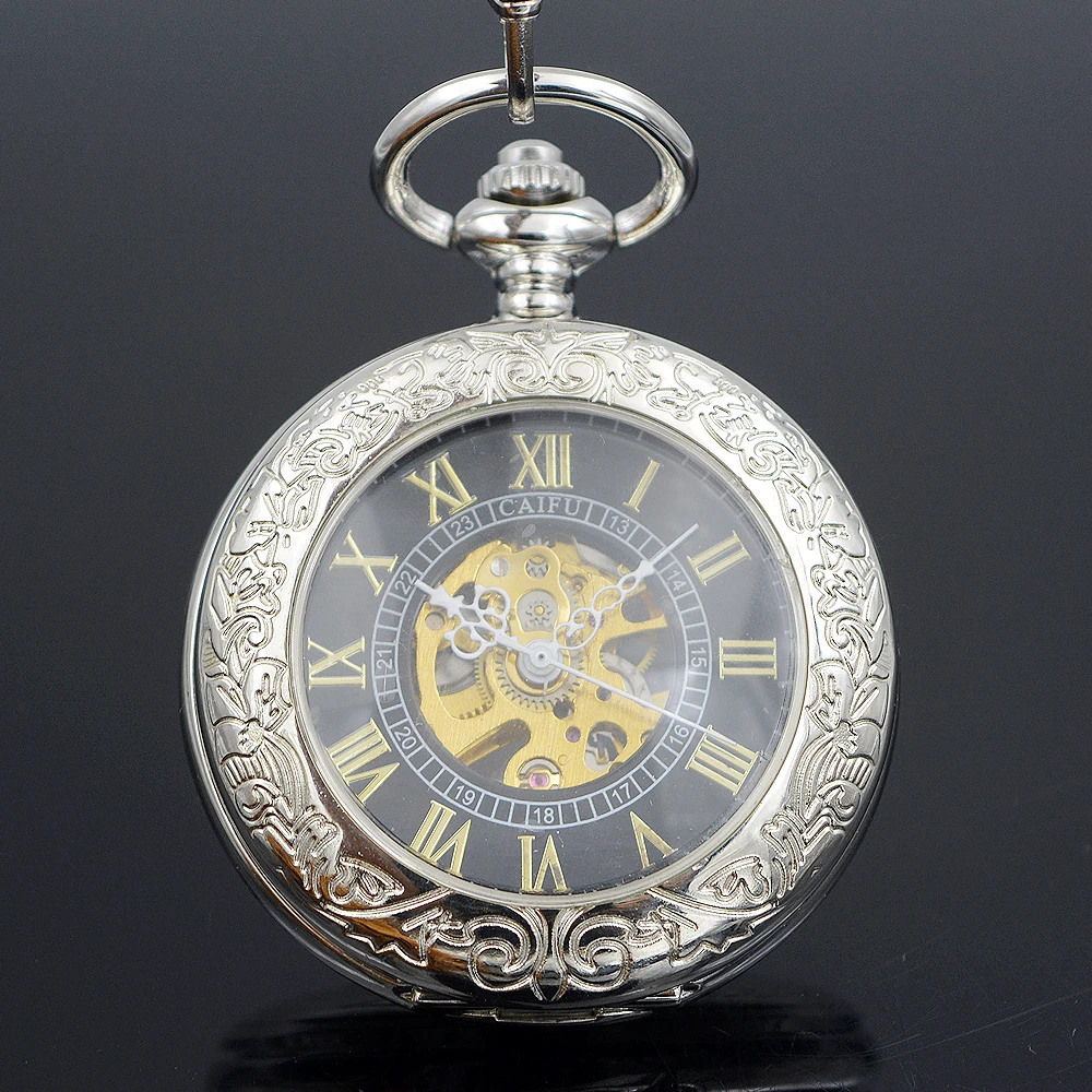 On-time Delivery: If you do not receive your purchase within 60 days, you can ask for a full refund before order completion (when you click "Confirm Order Received" or exceed confirmation timeframe).Great Offers Steampunk Skeleton Male Clock Transparent Mechanical Silver Case See Though Face Retro Ver Vintage Pendant Pocket Watch Gift