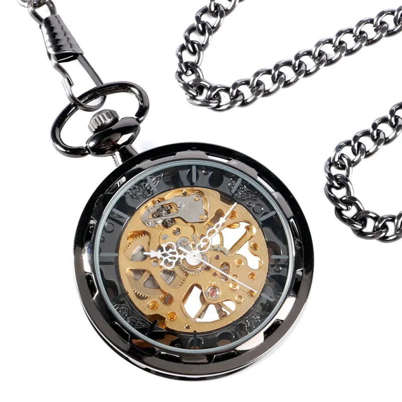 On-time Delivery: If you do not receive your purchase within 60 days, you can ask for a full refund before order completion (when you click "Confirm Order Received" or exceed confirmation timeframe).Hot Promotion Black Pocket Watch Hand-winding Luxury Fob Vintage Chain Skeleton Cool Retro Fashion Trendy Mechanical Watches Steampunk Gift