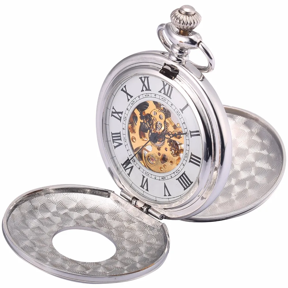 On-time Delivery: If you do not receive your purchase within 60 days, you can ask for a full refund before order completion (when you click "Confirm Order Received" or exceed confirmation timeframe).Hurry! Special Steampunk Skeleton Silver Roman Numeral Double Hunter Mechanical Hand Winding Nurse Watch Pendant Pocket Watch Fob Chain /WPK186