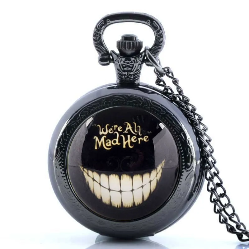 On-time Delivery: If you do not receive your purchase within 60 days, you can ask for a full refund before order completion (when you click "Confirm Order Received" or exceed confirmation timeframe).Big Sale Vintage Glass Art Alice In Wonderland Locket Necklace Pocket Watch Skeleton Were All Mad Here Bronze Steampunk Men pendant