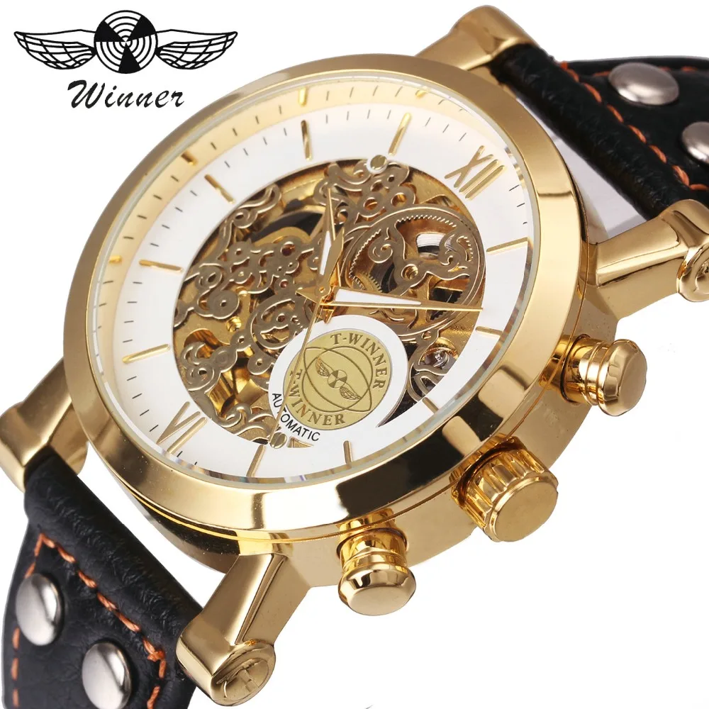 On-time Delivery: If you do not receive your purchase within 60 days, you can ask for a full refund before order completion (when you click "Confirm Order Received" or exceed confirmation timeframe).Fast Gift WINNER Sport Watch Men Auto Mechanical Watches Golden Skeleton Dial Planet Pattern Design Leather Strap Steampunk Wristwatch