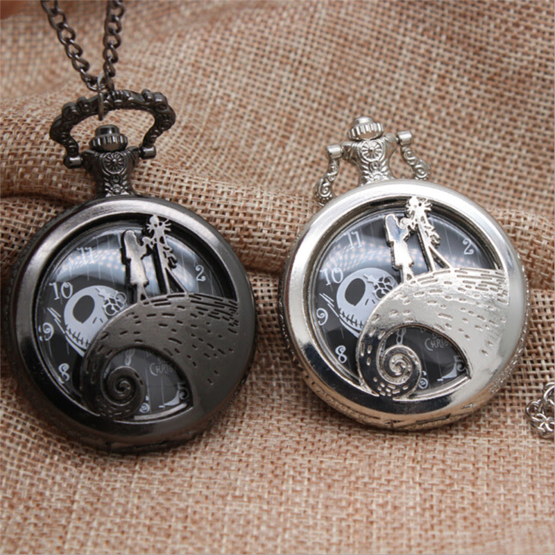 On-time Delivery: If you do not receive your purchase within 60 days, you can ask for a full refund before order completion (when you click "Confirm Order Received" or exceed confirmation timeframe).Hurry! Gift Antique Black Nightmare Before Christmas Theme Pocket Watch Vintage Steampunk Pendant Necklace