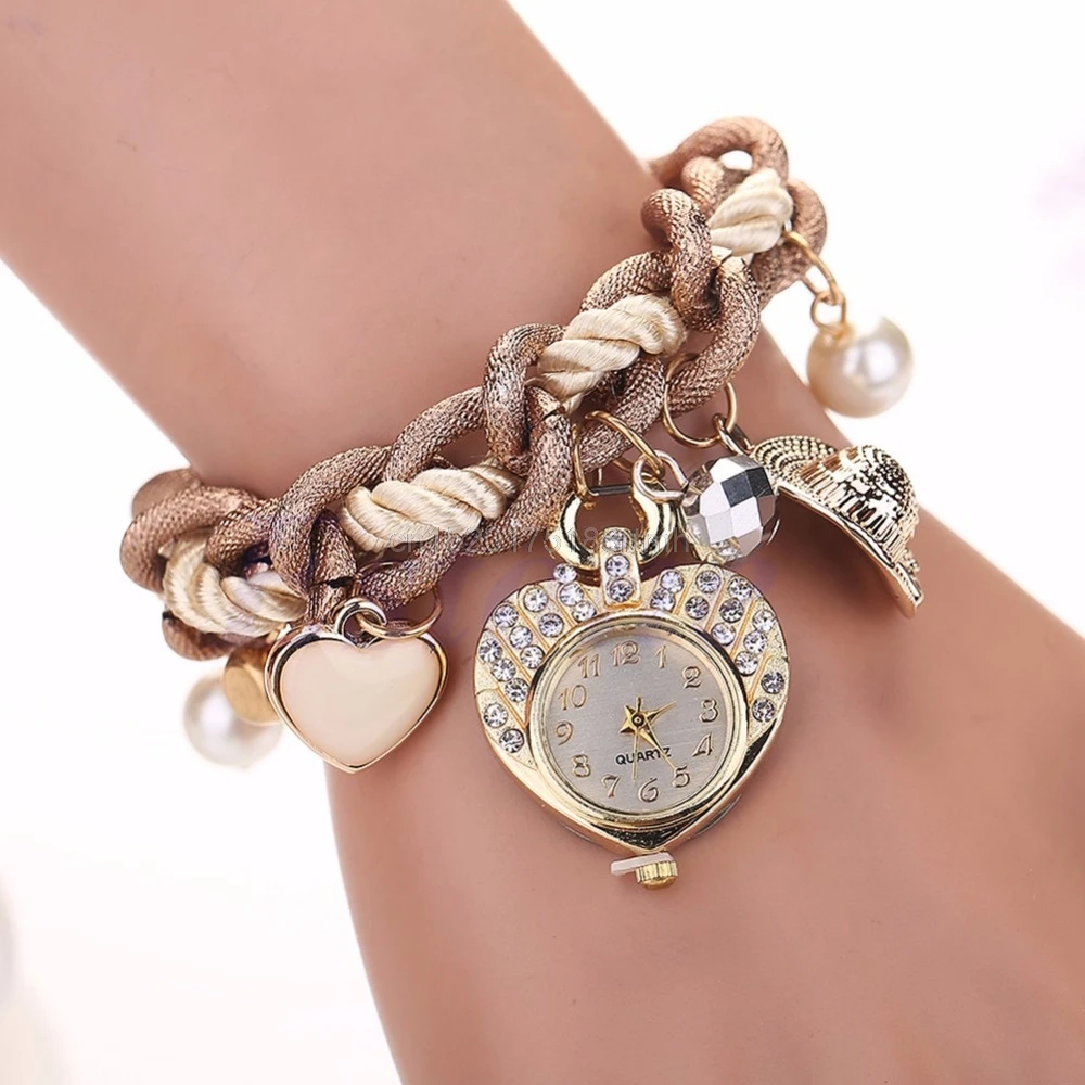 Wonderful Discount 1 PC Women Rhinestone Heart Quartz Steampunk Faux Pearl Chian Bracelet Wrist Watch #T50P# Drop ship comparison sale Rating: 4.8 out of 5