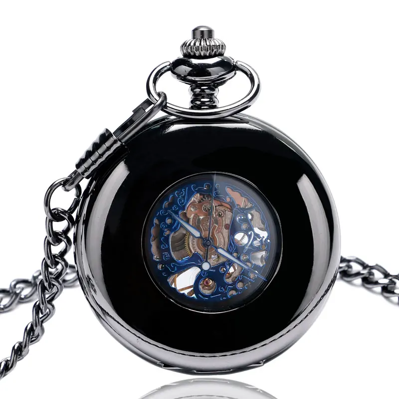 On-time Delivery: If you do not receive your purchase within 60 days, you can ask for a full refund before order completion (when you click "Confirm Order Received" or exceed confirmation timeframe).Wonderful Limited 2017 Luxury Black Smooth Mechanical Hand Wind Pocket Watches Hollow Blue Roman Number Skleton Carving Fob Clock Gift