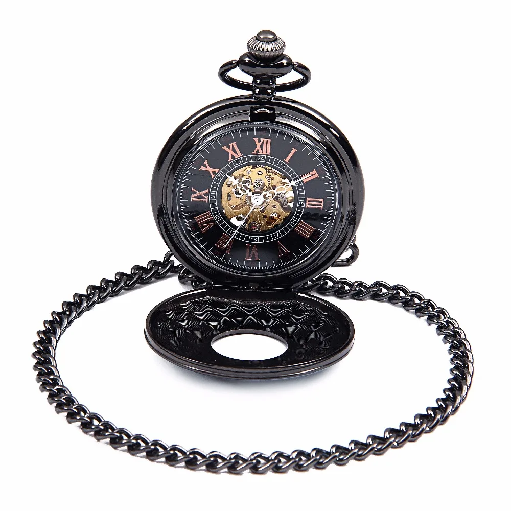On-time Delivery: If you do not receive your purchase within 60 days, you can ask for a full refund before order completion (when you click "Confirm Order Received" or exceed confirmation timeframe).2018 Flash Deal Men Women Steampunk Skeleton Mechanical Black Roman Number Dial Hollow Case Hand Wind Mechanical Pocket Watch Nice Xmas Gift