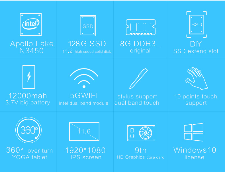 On-time Delivery: If you do not receive your purchase within 60 days, you can ask for a full refund before order completion (when you click "Confirm Order Received" or exceed confirmation timeframe).Terrific Promotion VOYO VBOOK A1 Notebook Original Windows10 Intel APOLLO LAKE N3450 11.6\ Laptop Quad Core 1.1GHz 8G RAM+128G SSD Camera 12000mAh