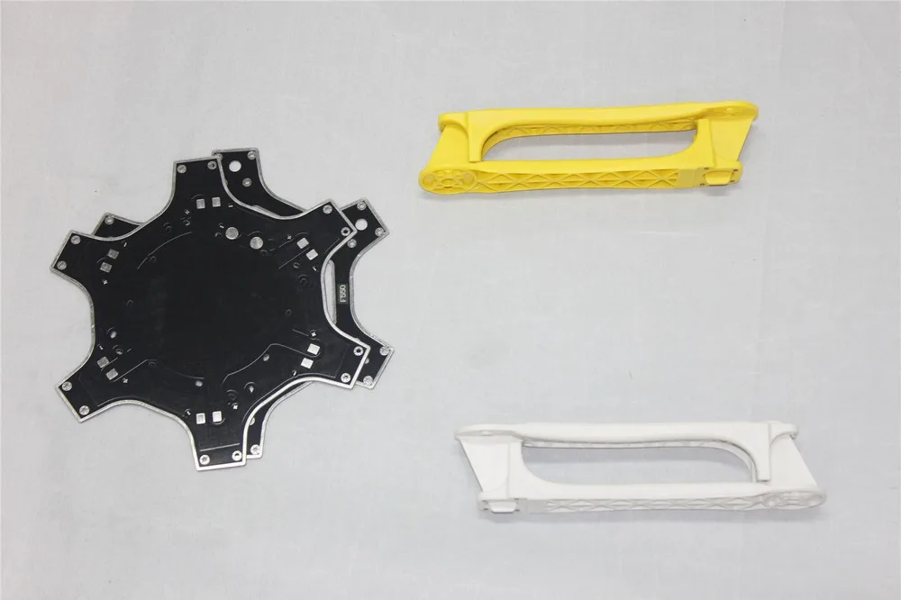 Packing including :1X F550 Hexa-Rotor Air Frame FlameWheel Kit 550 mm 1XHigh Landing Gear Aerial photography Tripod 6X A 2212 A2212 1000KV Brushless Outrunner Motor 6X30A Brushless ESC 3*1045 3-blades 1*RadioLink AT10 2.4GHz 10CH Remote Control System 10 Channel Transmitter Receiver R10D Detail: F550 Hexa-Rotor Air Frame FlameWheel Kit 550 mm