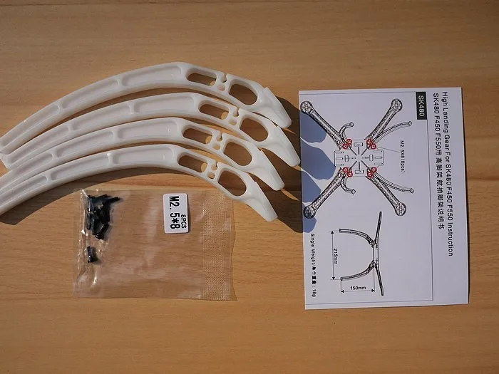 Package includes:1 x High Landing Gear(1set) 8 x M2.5*8 Screws 1xUser manual30A Brushless ESC