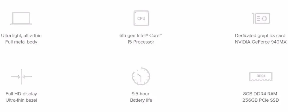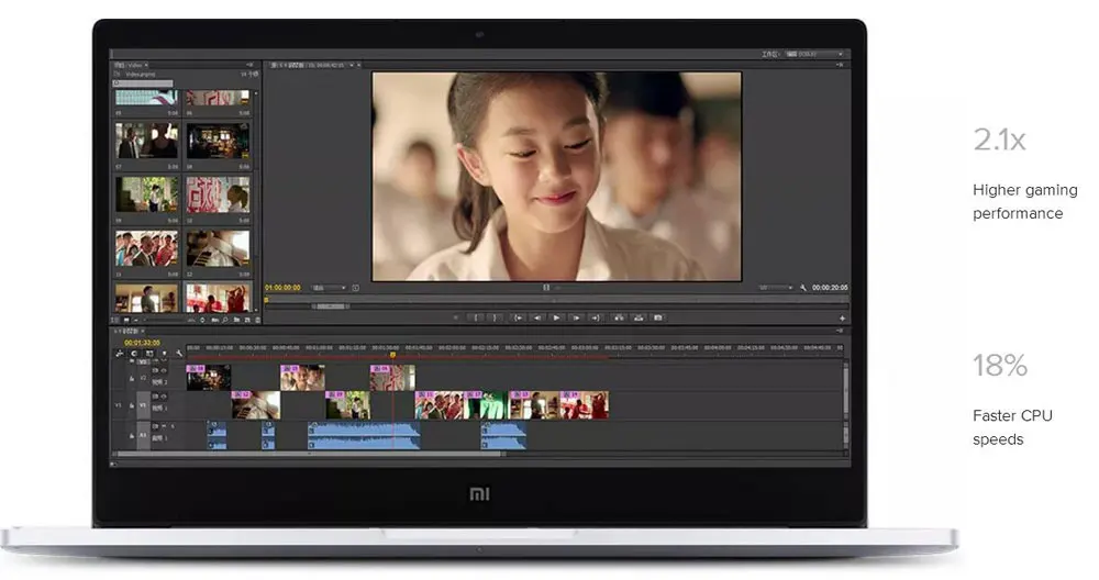 Heavyweight performance, without the weight A performance thats top of its class, Mi Notebook Air includes a 6th-gen Intel® Core™ i5 Processor, DDR4 RAM, PCIe SSD, dedicated graphics card, and GDDR5 SDRAM. Even when editing videos or playing games, it executes intensive tasks with ease.