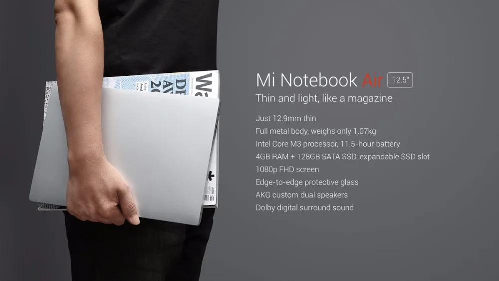 Xiaomi Mi Laptop Notebook Air English Windows 10 Intel Core M3-7Y30 CPU 4GB DDR3 RAM Intel GPU 12.5 inch display SATA SSD