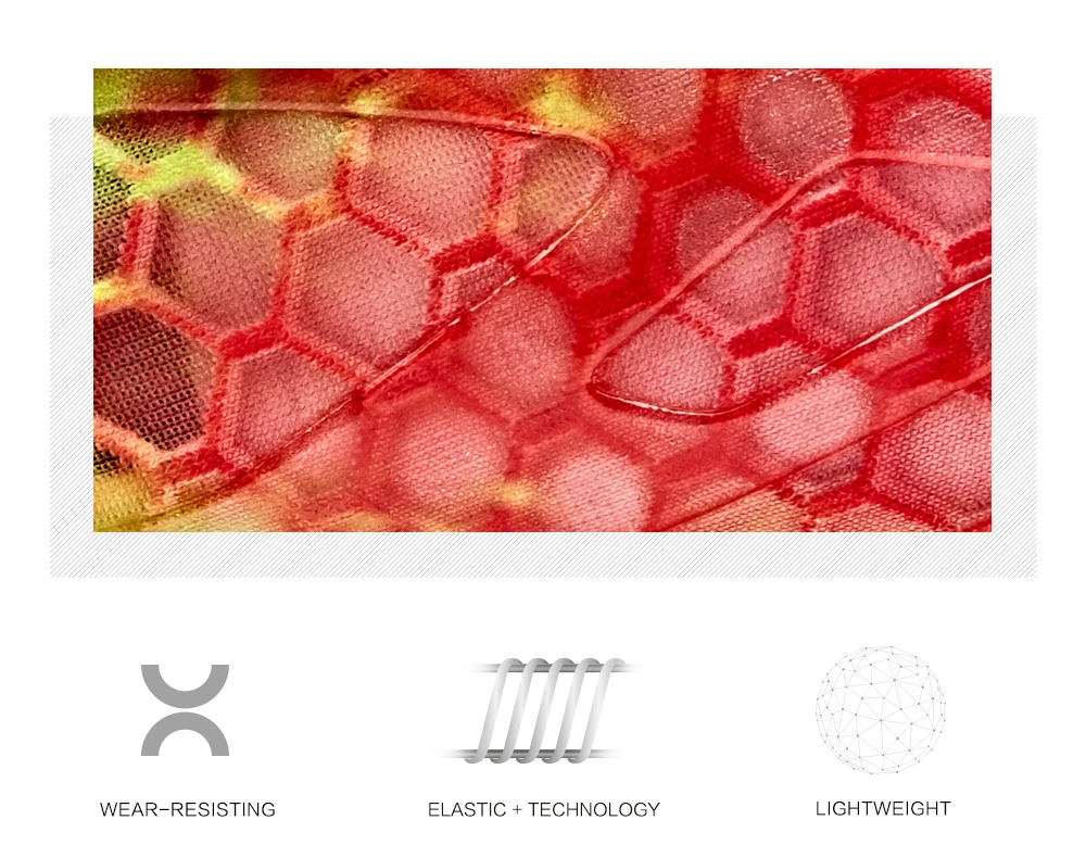 A new one piece toe guard has been designed to further reduce weight, increase airflow into shoe and improve the aesthetics of the front area. The heel guard has also been designed to improve grip.