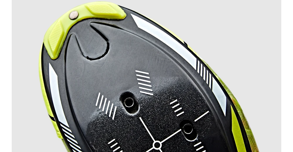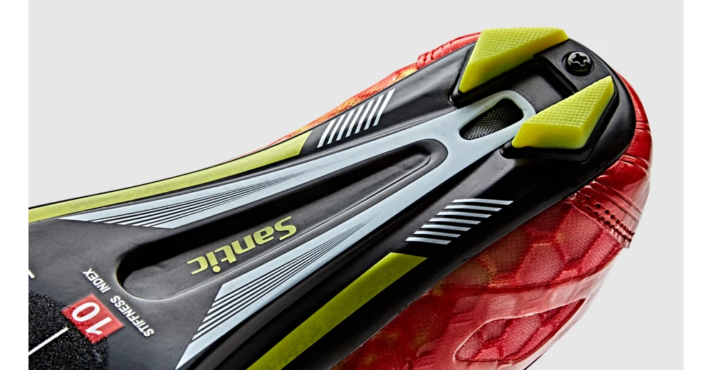 The Santic is manufactured utilizing unidirectional carbon fibre laid specific to stress points to maximise performance whilst minimising weight, creating the highest strength to weight ratio of any cycling shoe currently available. The base is finished with a matt treatment to improve the aesthetics of the sole.