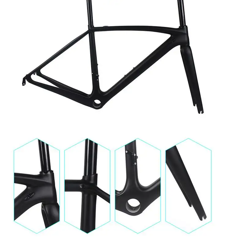 Fame type: Carbon Road frame Available sizes:44 49 52 54 56 58cm Material: T1100 carbon Model: OEM - Fit Both DI2 and Mechanical group Weave: UD/1K/3k Headset: Top 1-1/8" Down 1-1/2" Frame finish options: glossy/matte Seat post: Gift Seatpost BB:PF30 Converter turn 24mm and 30mm Brake: V brake brake Weight:890g +/- 50g (size 49), Fork: 370g Tested: Yes Gifts: Fork+Headphones + Clamp+Seatpost Warranty: 2 yearsYour purchase order, please leave a message to me, making the need for adequate time for you to design. Roughly 9-15 days, painting your wheels.