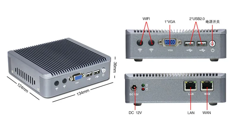 I/O | 2*RJ-45 LAN,1*12V DC input ,1*VGA,2*USB2.0,1*Power switch,1*Power led,1*HDD led |