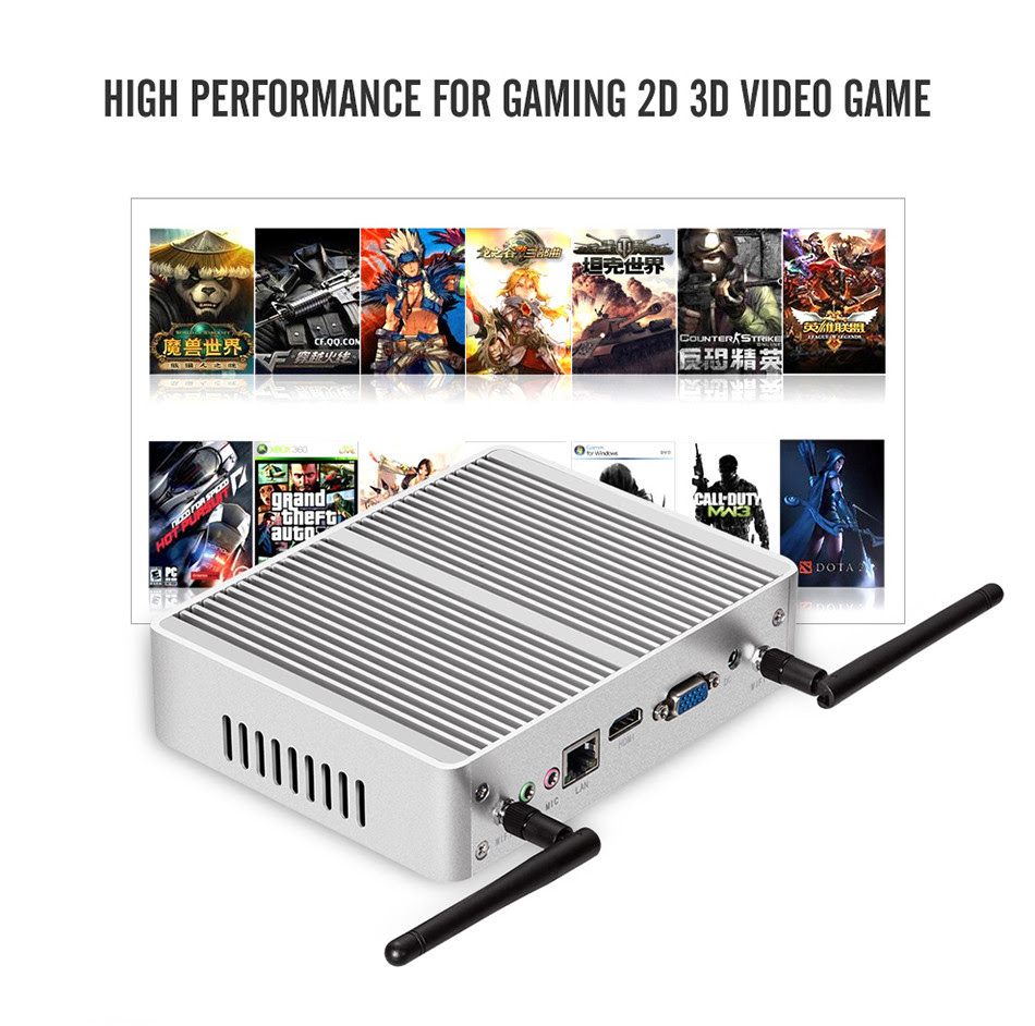 Fanless Mini PC X32 Intel Celeron 3965U Processor Dual Core 2.20GHz Intel HD Graphics 610 4K UHD Support HDMI VGA 300M WiFi DDR4 RAM Dual Storage 1x MSATA SSD and 1x 2.5 inch SSD or HDD Supported OS Window 7/8/10 Linux Ubuntu
