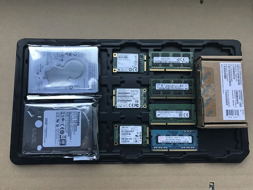 Accessories as Ram, SSD, HDD, we use famous brand: Ram-Samsung, Hynix,Micron,Kingston DDR3L 1600MHz SO-DIMM etc, SSD-Samsung,ADATA,Micron, Kingston, Toshiba etc, HDD-HGST, WD, Seagate etc. What brand we use depends on our test and our stock. Generally we use Msata SSD installed on Mpcie port and leave the SATA port blank for you to install 2.5 SSD/HDD.