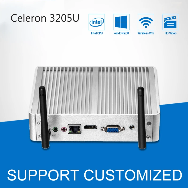 Mini PC Windows 7/8/10 Fanless Mini Computer Desktop Celeron CPU 3205U DDR3 RAM HDMI+VGA HTPC TV Box Office Computer