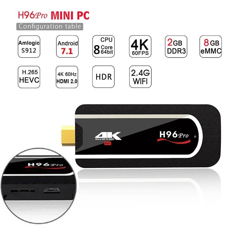 Android TV Box H96 PRO Mini PC 2GB RAM 8GB ROM Amlogic S912 Octa core Android 7.1 Support 4K WIFI DLNA H96 PRO Smart Set Top Box
