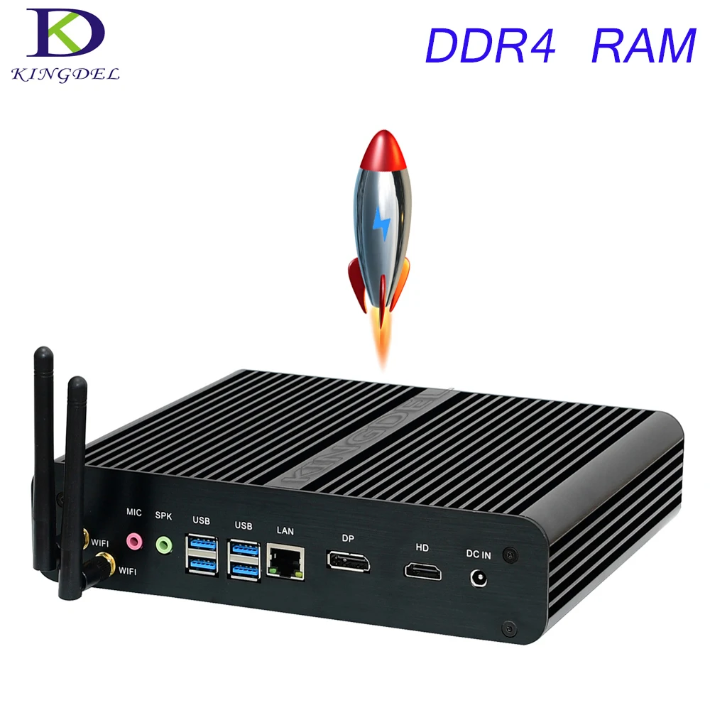 DDR3 RAM upgrade to DDR4 RAM now .4, Product Advantages: Small Size: All Kingdel Mini PC is smaller than A4 paper, some of them only 3.5 inch size, just like the HDD size used in traditional fat computers. Most of those small size mini pc can be mounted to the backside of monitor, and takes almost zero space on your desk, make your desk more clear and tidy. Durability: all of the fanless mini pcs are highly intergrated, fanless design makes it silent in working and no need extra maintenance like normal fat comptuters. And most of their cases are made by aluminium alloy metal materia.Low Power: all of the mini pcs work 12V power supply, power consumption is from 15W to 30W, compare to 150W traditional pcs consumption, it saves more than 80% energy. Universal Performance: The mini pcs are compatiable to almost all popular operating systems, such as Windows, Linux. You can not only use it as personal computer at home, HTPC in living room, but also use it in office, training center, advertisement, factory, internet cafe and anywhere that needs computers to work. 5,Application: - used as HTPC (Home Theater Personal Computer). Connect HDTV with the HDMI cable, you can enjoy education online and play internet movies or games.-used as Personal Computer, high configuration and fast speed, zero noise.- Internet Bar. High speed Gigabit Ethernet and diskless certificate, support 3D games.- Factory, classroom, bank, supermarket, manager rooms, stores.- used in Library, reading room, hotel, training, call center, CCTV company.