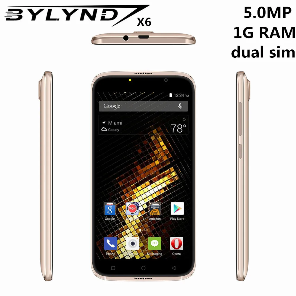 Original China mobile phones BYLYND X6 cheap celular 5.0" 5MP Android 6.0 smartphones 3G 1G RAM games MTK6580 Quad core unlocke