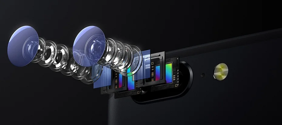 Dual Rear Camera Rear Camera Wide-angle:Sensor: Sony IMX 398;Megapixels: 16;Pixel Size: 1.12 µm;EIS:Yes;Autofocus:DCAF;Aperture: f/1.7 Rear Camera Telephoto:Sensor: Sony IMX 350;Megapixels: 20;Pixel Size: 1.0 µm;Autofocus: PDAF;Aperture: f/2.6
