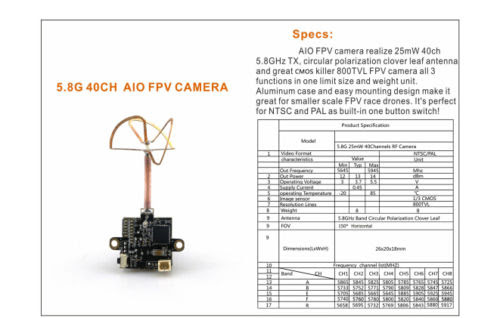 1 X 5.8G 40ch AIO FPV Camera with Video Transmitter (Only Upgraded Version included)