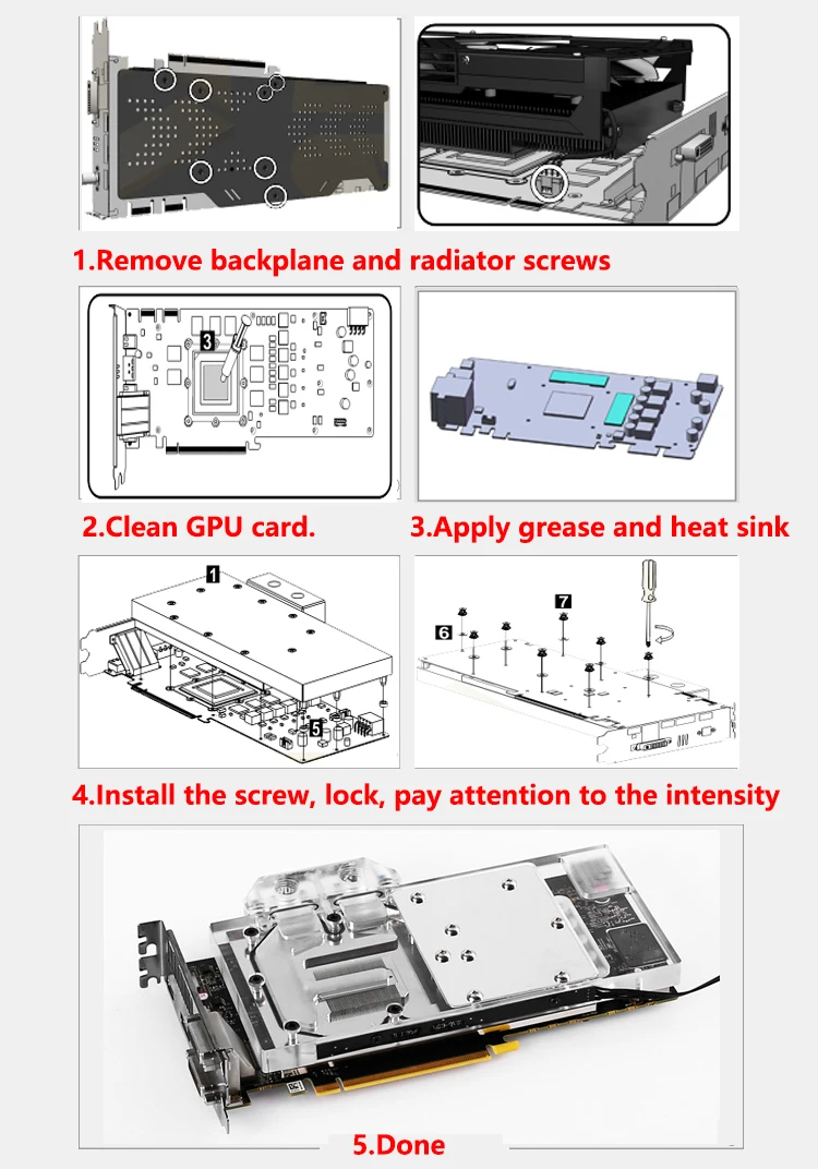 2. The blue fitting only for display, without in the packet. 3. if you cant sure your card fit or not,pls connect us for support. 4. this is correct PCB for water block,if your card PCB is different,it cant work.PCB is very very important,pls make sure it.