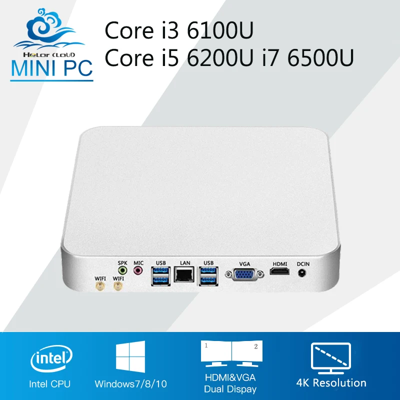 Intel CPU Mini PC Cooling Fan Mini Computer Windows 10 Core i3 6100U i5 6200U i7 6500U 4K HTPC HD Graphics 520 Desktop Gaming Office Computer
